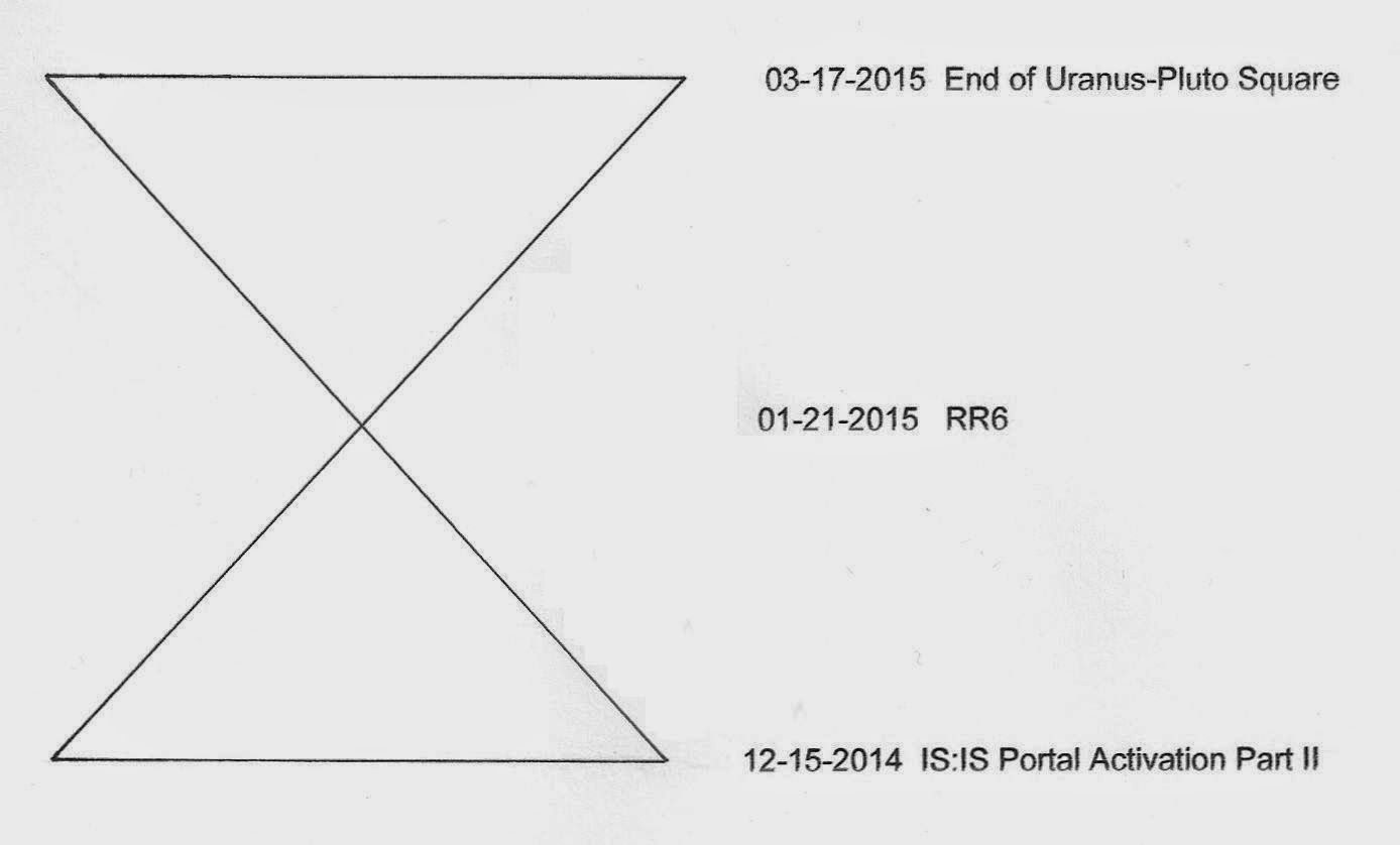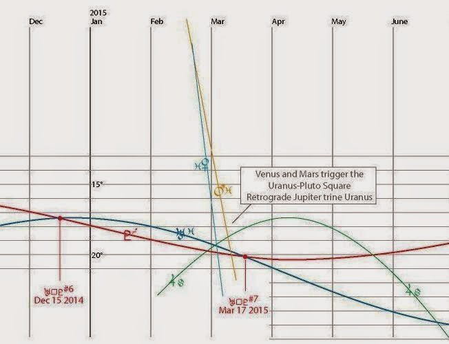 The opening and closing points of this Window of Opportunity are moments of exact Uranus-Pluto square, the sixth and the seventh (which is also the last) exact Uranus-Pluto square positions within the Uranus-Pluto square planetary configuration that is occurring within 2012-2015 time frame. Uranus-Pluto square signifies the revolution of consciousness which will dissolve the controlling structures of the Cabal: