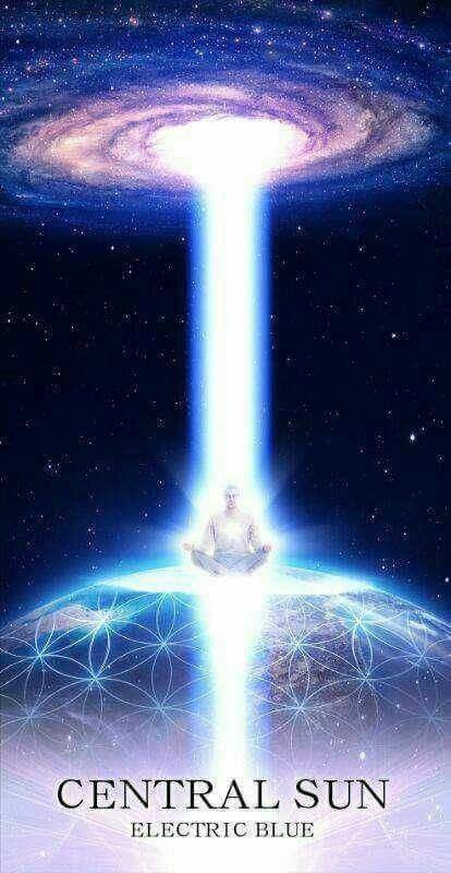 我们注意到,《自由之钥冥想》的冥想指南有一些混淆。在第3步中,它描述了"观想一道电蓝光柱从银河中央太阳发出......"。这并不是指一道带电的蓝色光柱,而是指一道电蓝色的光柱。在下面的图片中,你可以看到一道电蓝色的光柱是什么样子的:(译注:其实看下面的图观想是最贴切的)